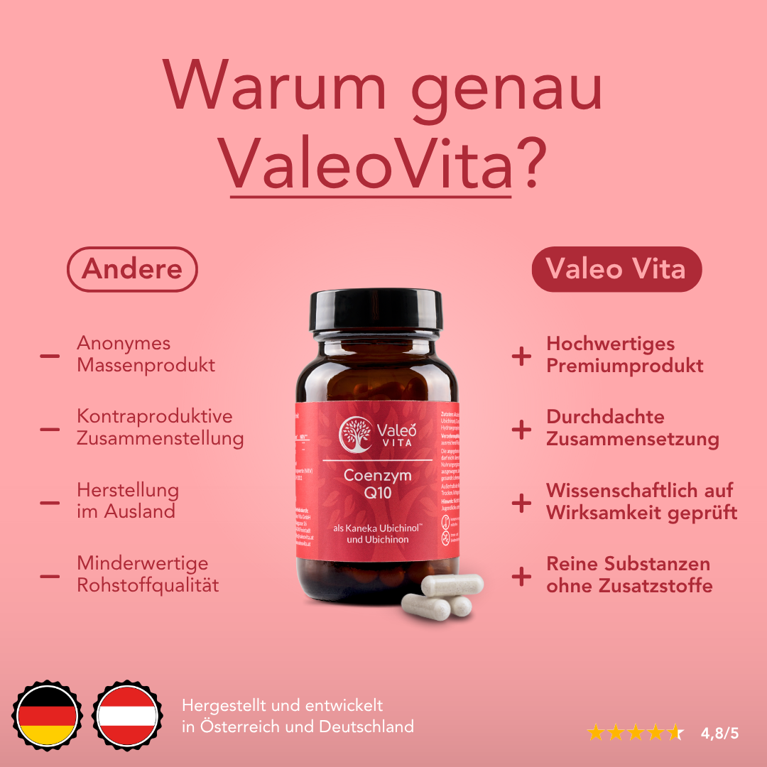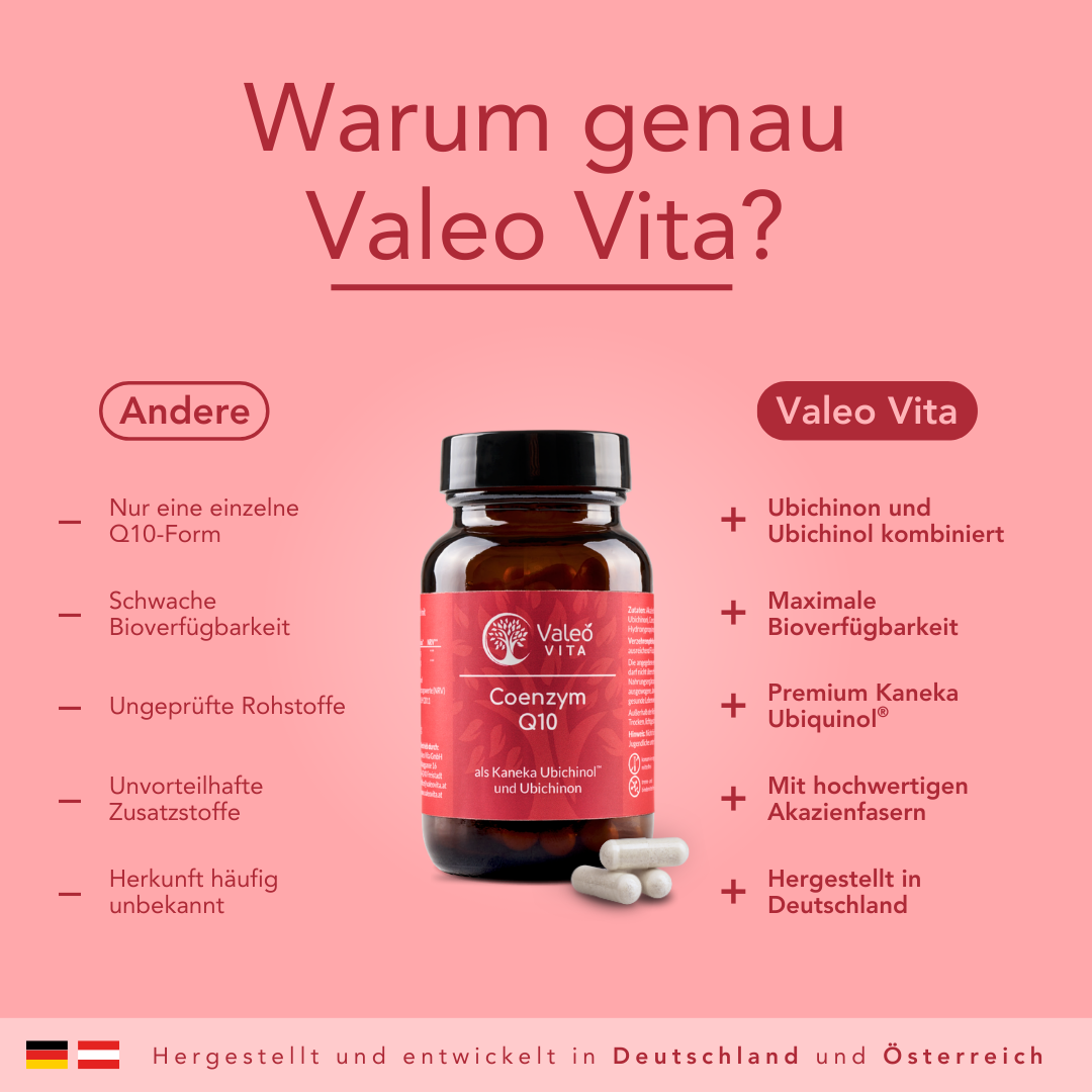 Valeo Vita Coenzym Q10 – Hochwertige Kombination aus Ubichinon und Ubichinol