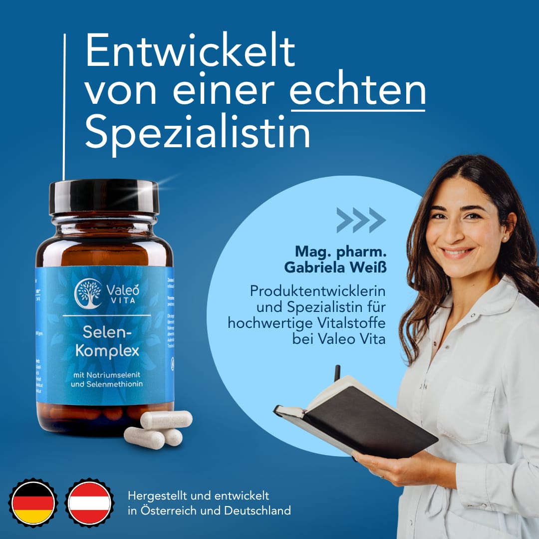 Für unsere Valeo Vita Selen-Komplex Kapseln verwenden wir eine Kombination aus veganem Selenmethionin und Natriumselenit.