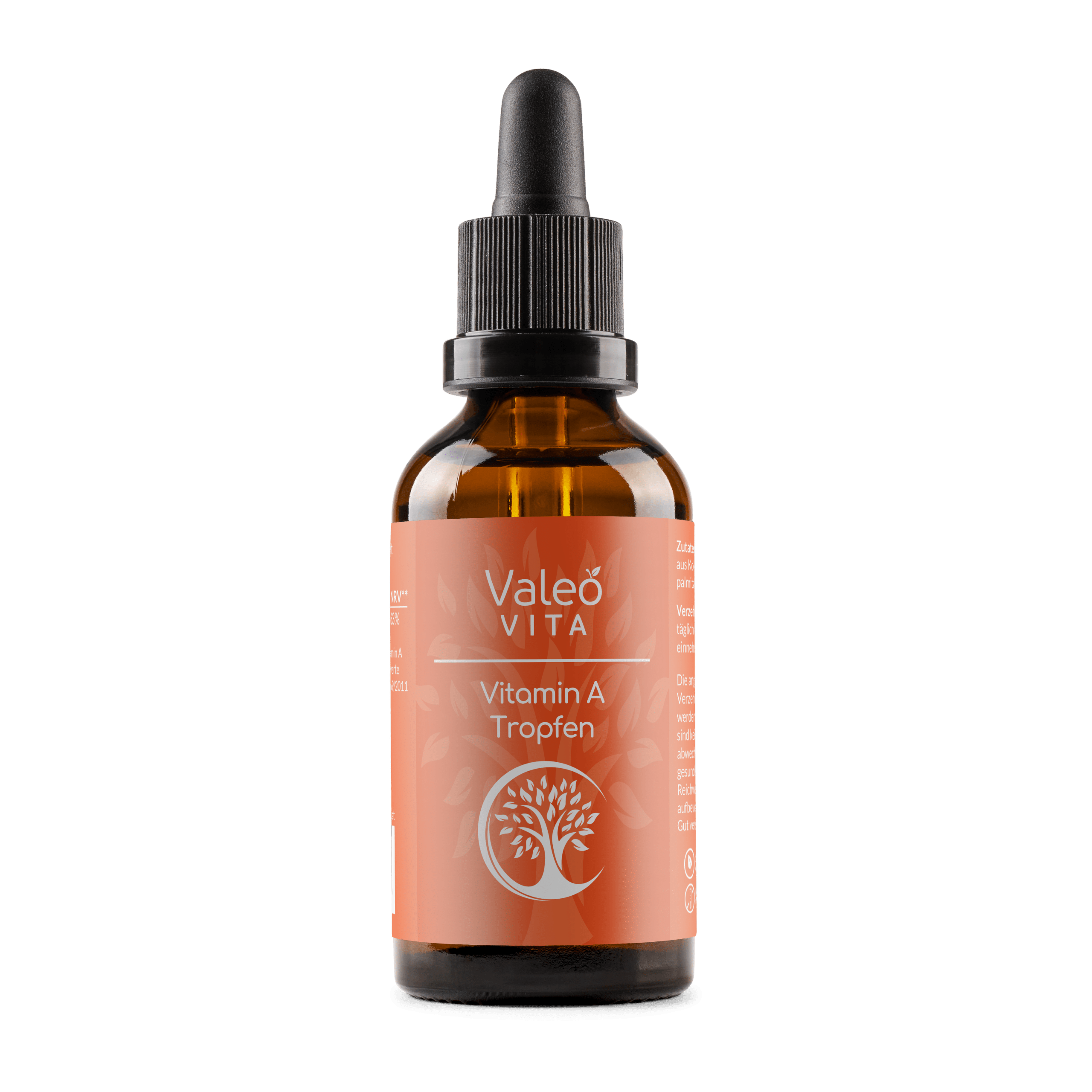 Die Tropfen ermöglichen eine flexible, individuelle Dosierung direkt über die Mundschleimhaut. Das fettlösliche Vitamin A in öliger Tropfenform ist besonders gut verwertbar und eignet sich für Menschen mit Schluckbeschwerden. Unsere Vitamin-A-Tropfen sind frei von Farb- und Konservierungsstoffen, in hochwertigem MCT-Öl aus Kokos gelöst und besonders sparsam in der Anwendung. Eine 50 ml Flasche enthält rund 1600 Tropfen. Ein Tropfen liefert 500 µg Vitamin A (= 1.666 IE).