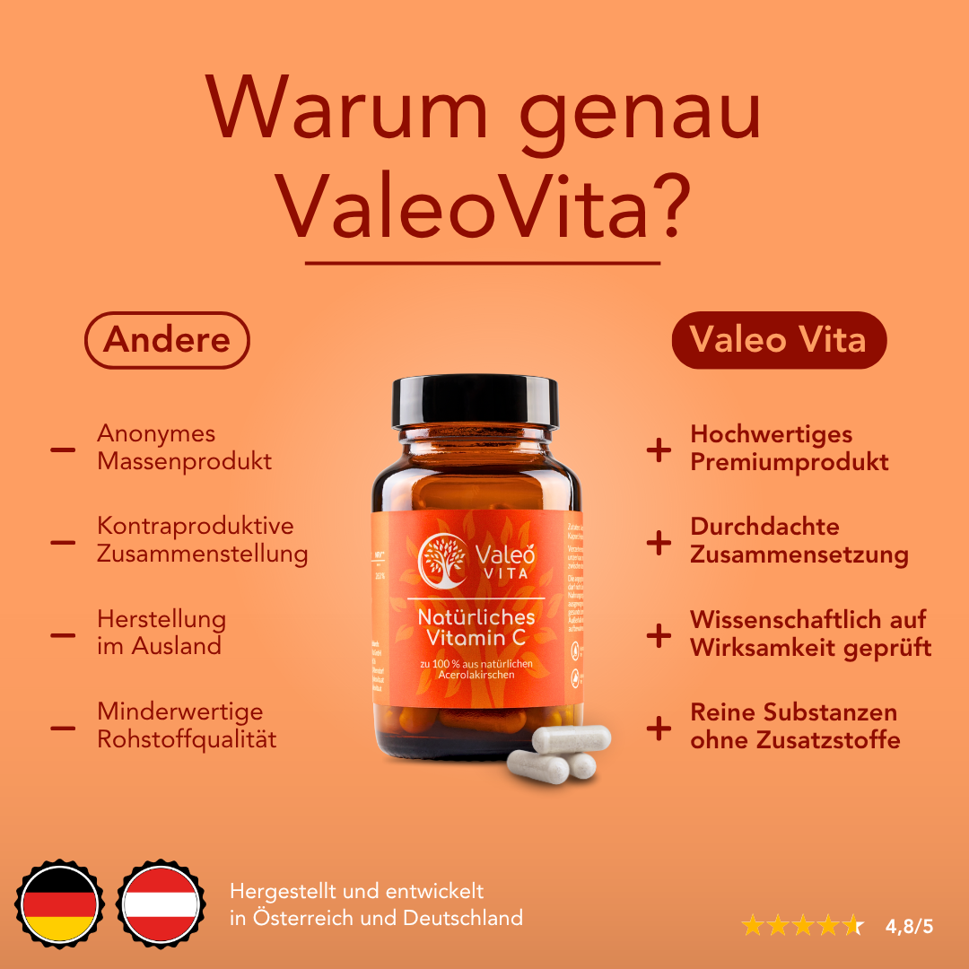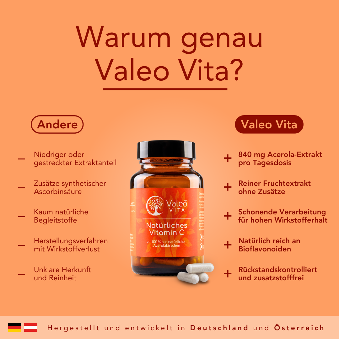 Valeo Vita natürliches Vitamin C aus Acerola mit sekundären Pflanzenstoffen